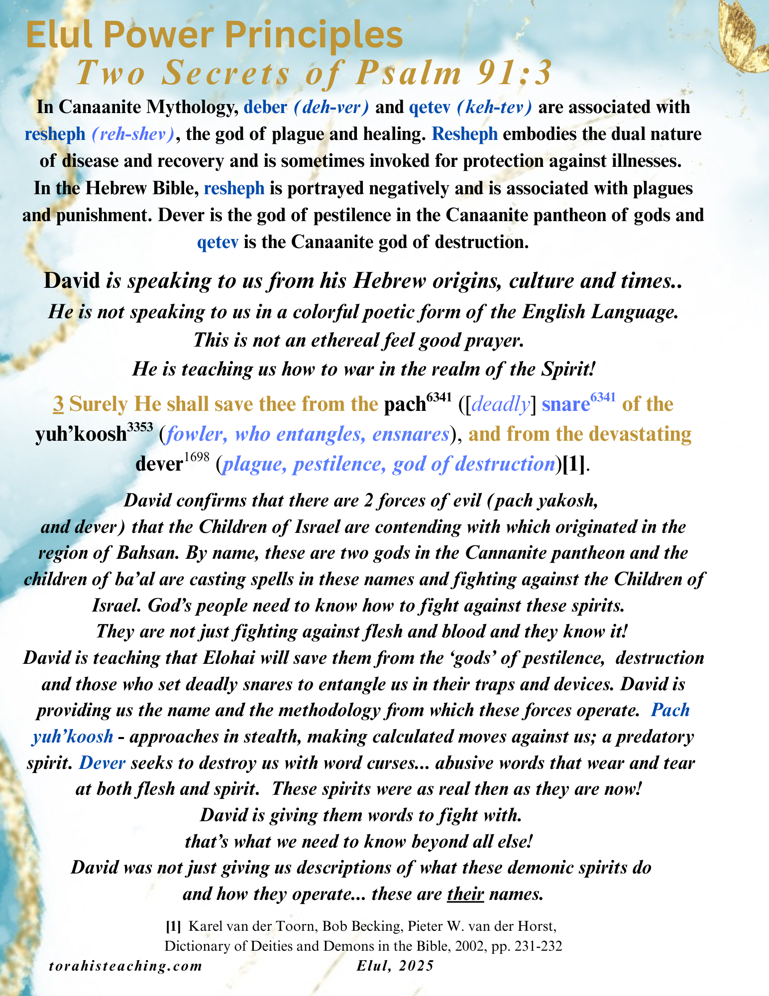 We’re stripping the poetic mindset of this Psalm out of our minds. “The death that walks in darkness…” is not a poetic turn of phrase. Darkness, (mot) is one of the high ranking gods of the Canaanite pantheon.
